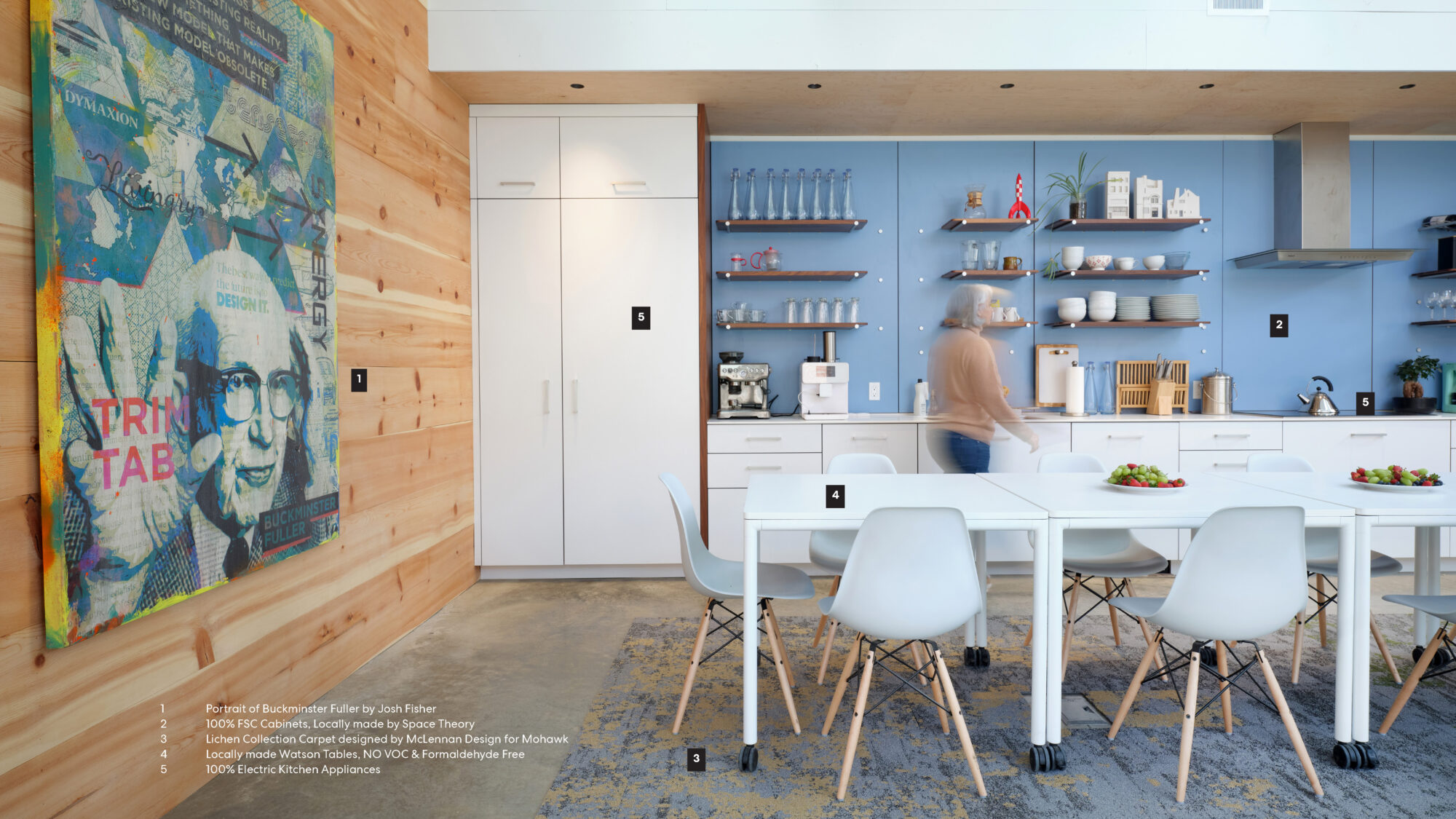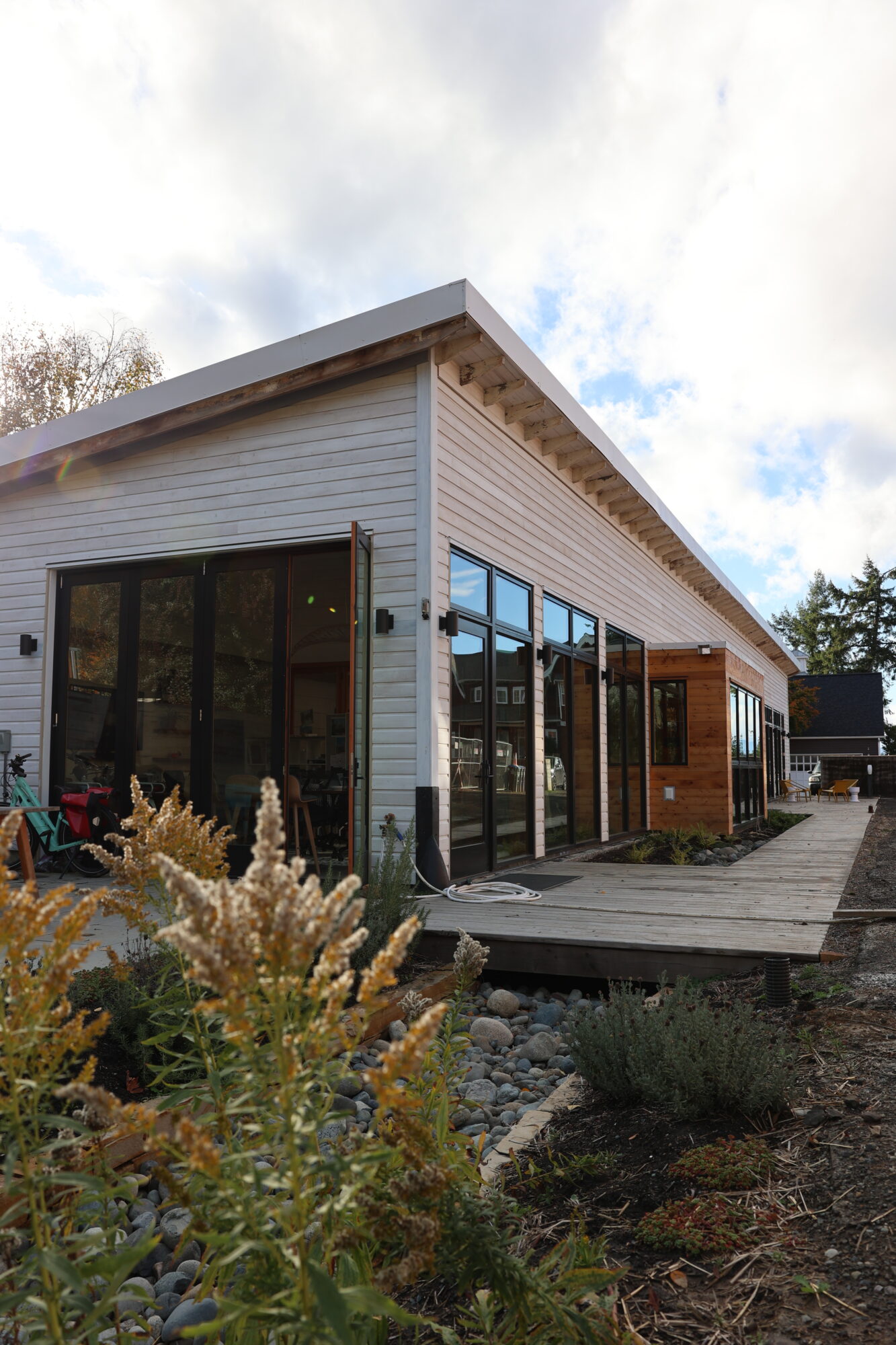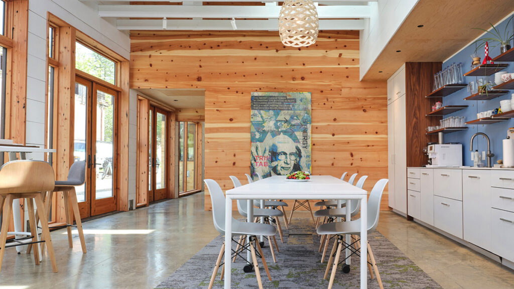net-zero studio and includes 100% FSC-certified wood or salvaged wood, on-site stormwater treatment, and pollinator-friendly